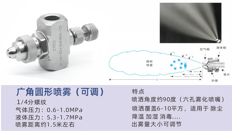 毛紡噴霧加濕、模具潤滑、噴霧注入、空氣消毒殺菌等領域(霧化粒徑要求細可參考此款)