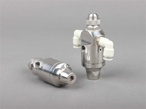 1/4DJ的特點(diǎn)是采用單個(gè)氣體管路,既用于噴射霧化,也用于氣體驅(qū)動(dòng)的運(yùn)行,單氣體管路型可以調(diào)節(jié)壓力以達(dá)到預(yù)期的“開-關(guān)”時(shí)期,以引起霧化氣體和液體的同時(shí)流動(dòng)。噴嘴的運(yùn)行每分鐘可達(dá)180次循環(huán),要求最小氣體壓力為2巴。
