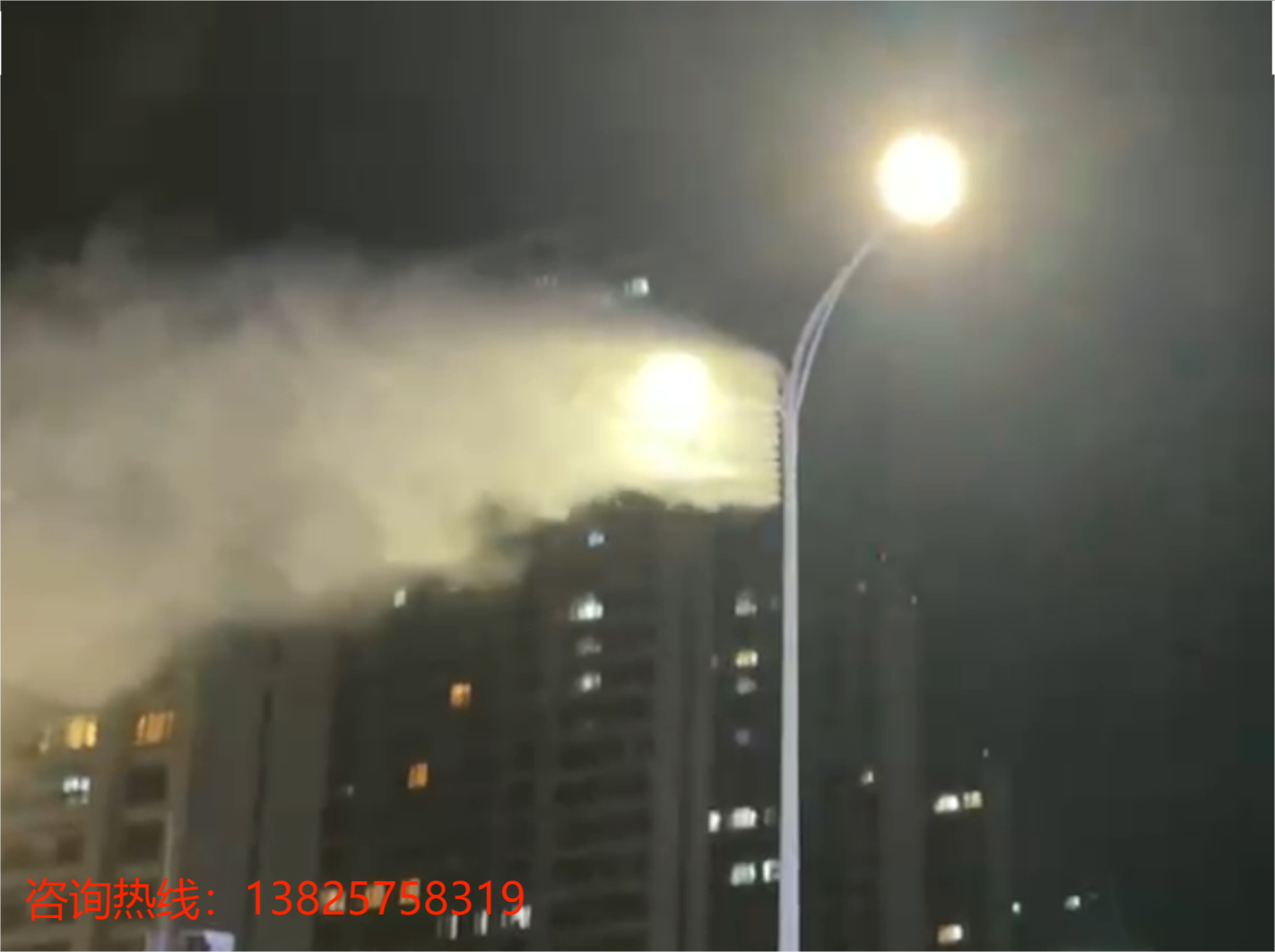 道路燈桿降塵除霾系統運用到公路上,及部分人員密集和運營車輛常經過的區域可全面提高各族群眾的生活質量。讓廣大居民都能感受到高空淋水霧帶來的清新空氣。高壓噴射出白色的水顆粒霧有含有大量負離子同空氣中的正離子塵埃結合,對污濁大氣進行高效清洗如蒙蒙細雨降落地面。