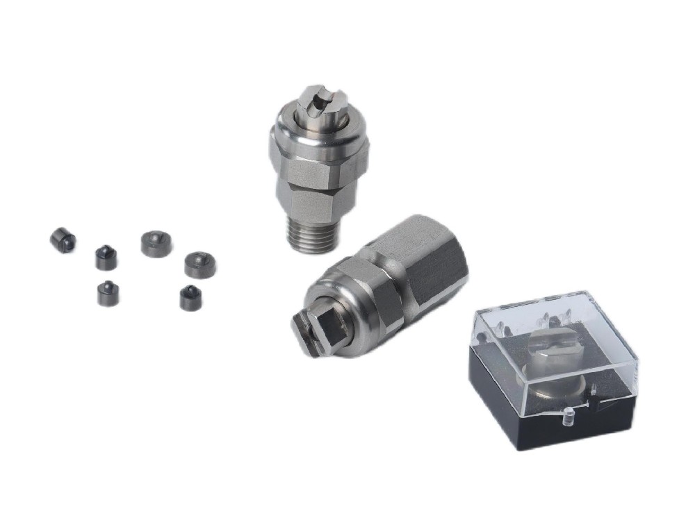 高壓碳化鎢扇形噴嘴的核心在于其采用碳化鎢材料制造。碳化鎢是一種硬度極高、耐磨性極好的材料,能夠在高壓水流和惡劣環境下保持長時間的使用而不易損壞。這種材料的應用,使得高壓碳化鎢扇形噴嘴在高壓清洗和噴涂過程中,能夠抵抗磨損和腐蝕,保持噴嘴的形狀和性能穩定。