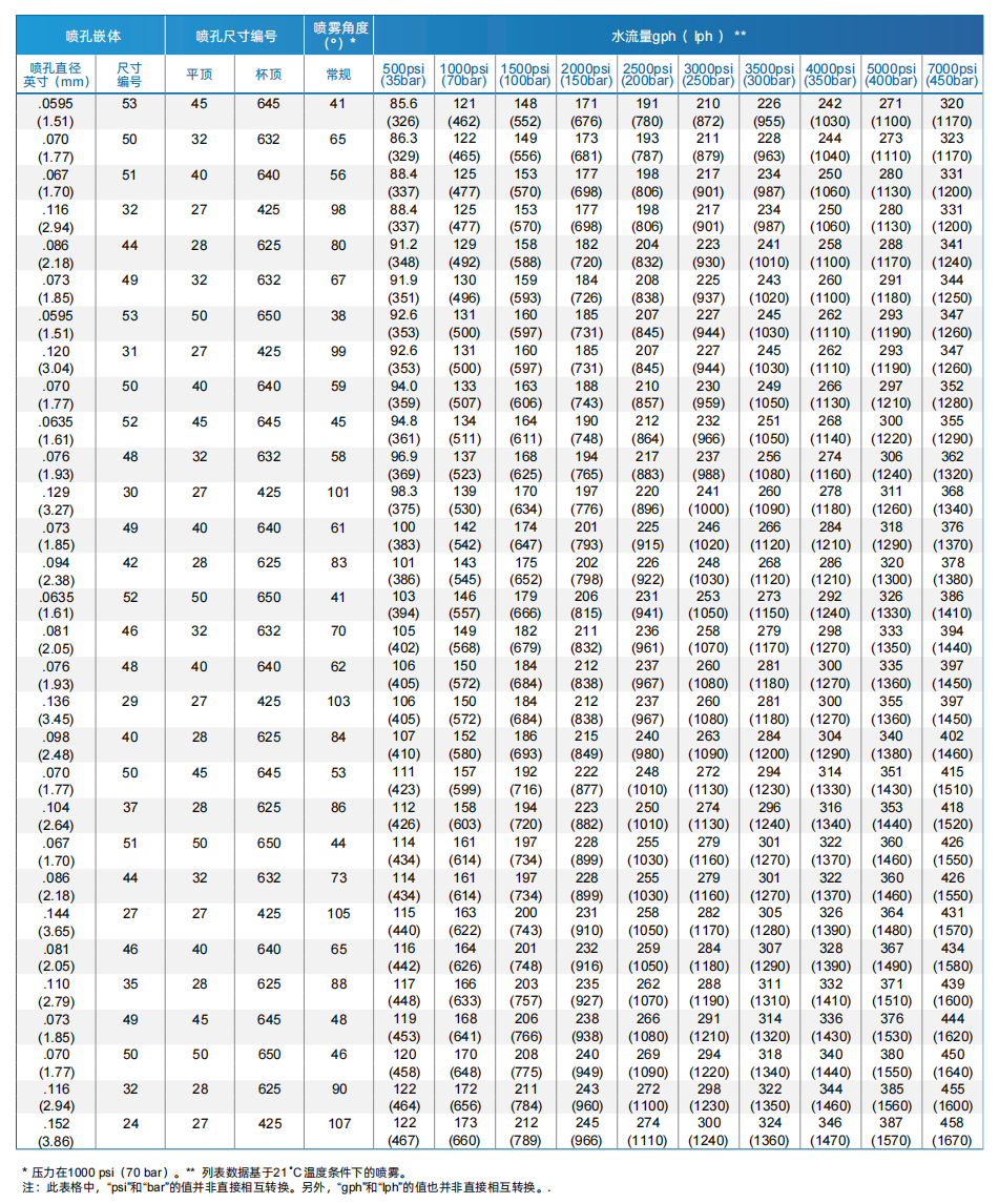 大流量噴孔鑲件/噴芯組合可以在較低壓力下使用,盡量減少噴嘴和泵的磨損