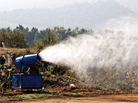 效果與優(yōu)勢(shì):霧炮機(jī)通過(guò)噴出水霧,水霧漂浮在空氣中,和空氣中的灰塵、PM2.5、霾等污染物吸附在一起,然后進(jìn)行沉降,以達(dá)到凈化空氣的目的。