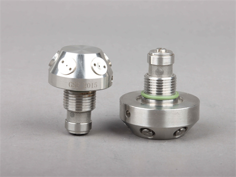 高壓細水霧噴頭是由噴頭體、噴嘴、噴嘴芯及濾網等零件組成,一定壓力的水通過噴頭濾網進入噴頭后,將壓力水從噴嘴孔中高速噴出,與周圍的空氣產生強烈的摩擦,水流被撕裂,從而形成細水霧沿一定角度噴射。該高壓細水霧噴頭噴放的細水霧屬于I級細水霧,Dv0.9≤100μ,壓力高、彌漫效果好,噴放后水霧的駐留時間長,與其它噴頭相比,可降低滅火、控火的噴霧強度,用水量少